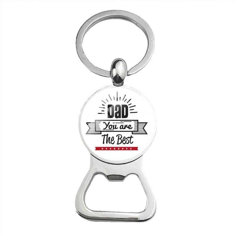 Premièrement, il s’agit d’un porte-clés véhiculant un message tendre. En effet, il propose 26 versions différentes, chacune avec un joli message, que ce soit une expression d’amour pour votre père ou une déclaration de votre admiration (par exemple, « The Best Dad » – « Le meilleur papa »).