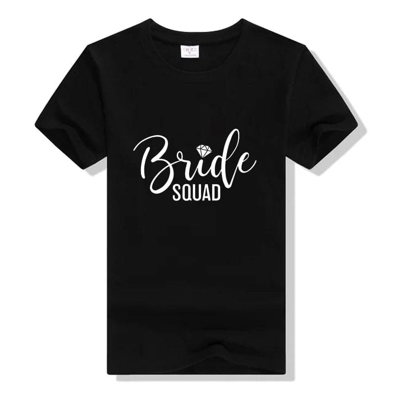 Quel est le meilleur cadeau pour la mariée ? Un Enterrement de Vie de Jeune Fille mémorable ! Le T-Shirt Bride Squad sera l’attraction principale de l’EVJF !