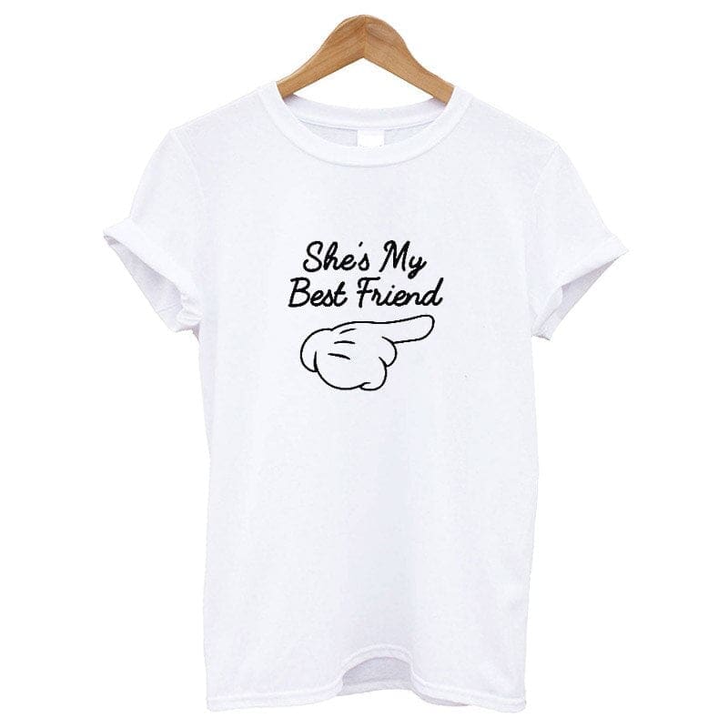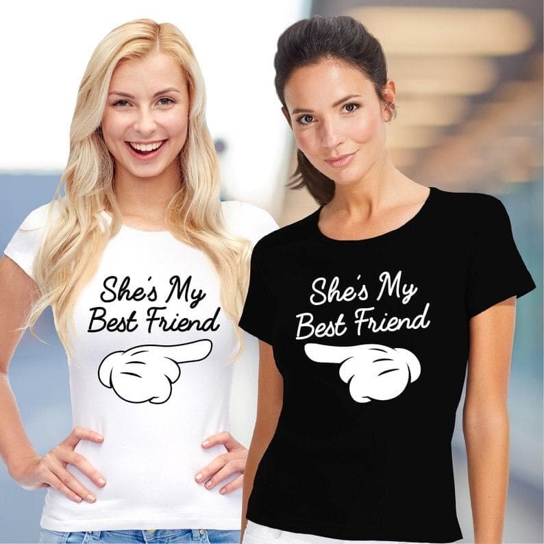 Affichez dès le départ qui est votre meilleure amie, ainsi personne n’osera s’interposer dans votre duo inséparable ! Optez pour notre Tee Shirt Best Friend pour Meilleure Amie.